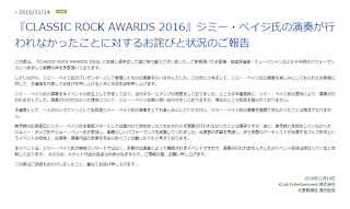 なんと!「THE CLASSIC ROCK AWARD」の日本語公式サイトではジミー・ペイジ氏が演奏しなかった理由について